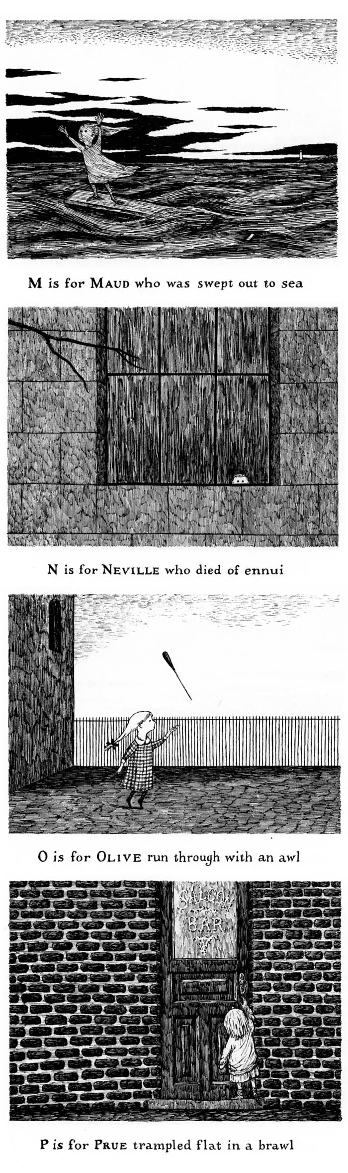 The subject of his The Gashlycrumb Tinies, or After the Outing came up briefly last week in Savannah, and when I got home that set me to thumbing through several of his little books, including that one.