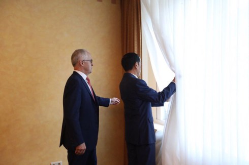 Two gentlemen peering outside at the protesters at the recent G7 in Canada. Donald Trump’s physician scurrying. And John McCain.
