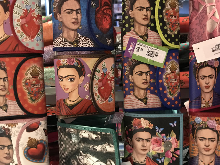 Apparently between shows, the building interior itself was worth the visit, and wandering through the all-things-considered-pretty-nice obligatory museum gift shop, I espied this display of Frida Kahlo-themed wallets.