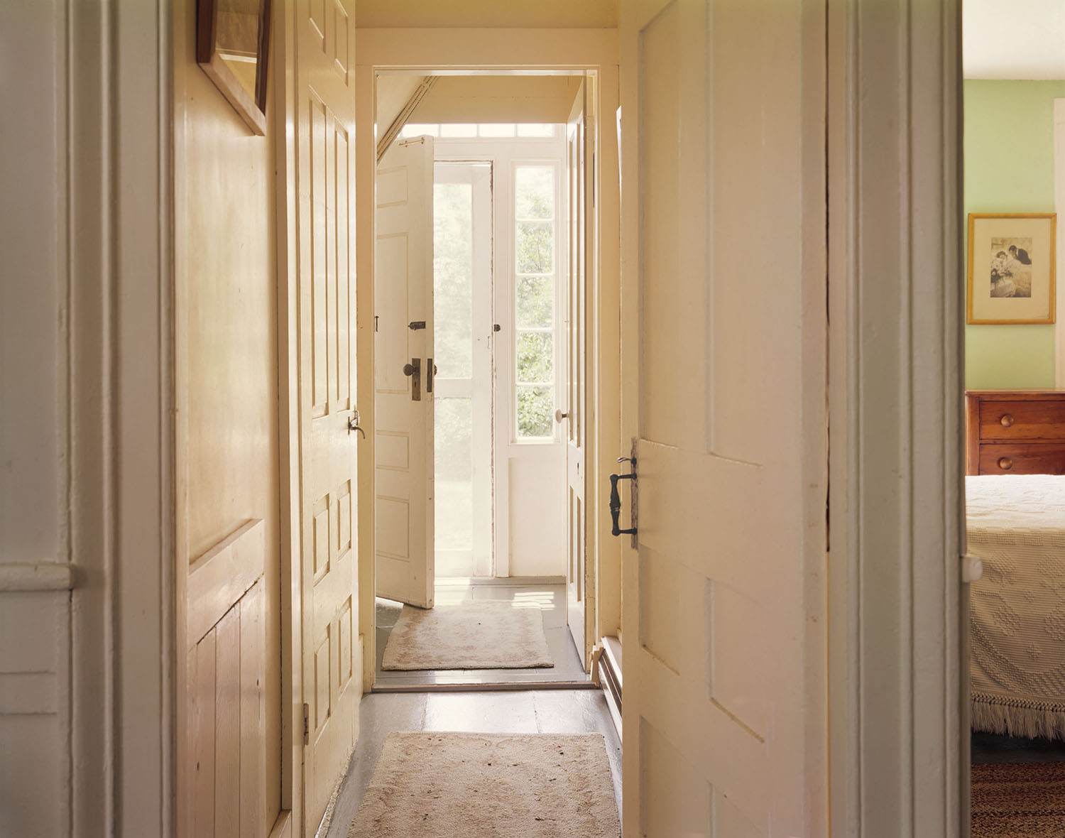 On the right, chenille bedspread, small bureau, framed print on the wall, ‘distract’ you from an otherwise kind of hypnotic view down the hall.